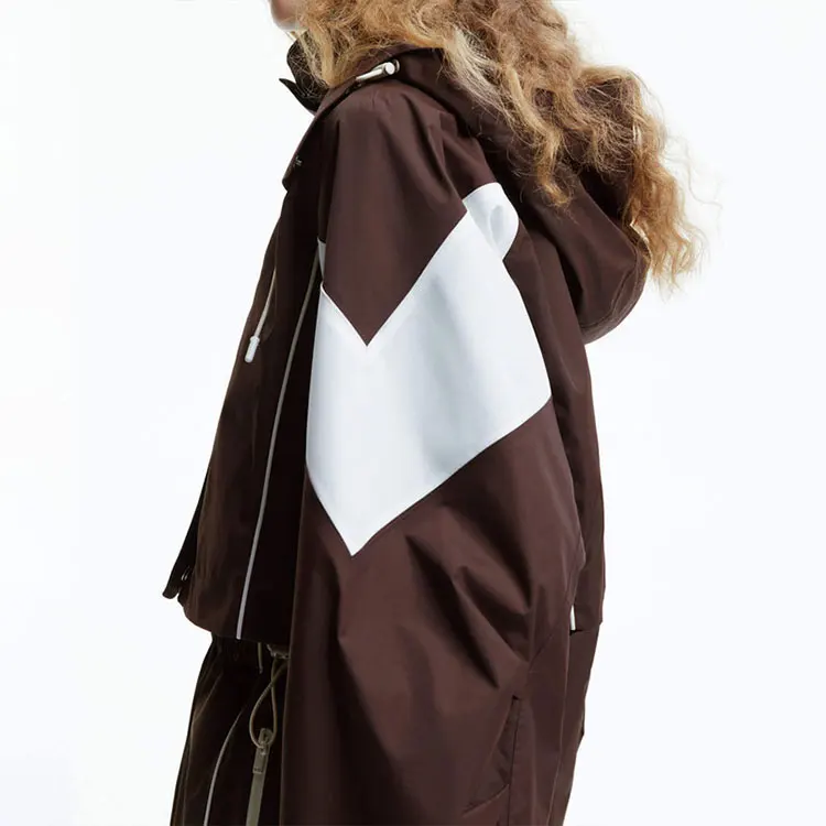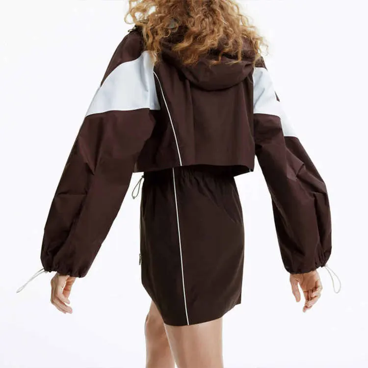 Huili Nylon Brown Crop Top and Shirt Matching Set Zip up Athletic Jacket Hoodie Custom Logo Windbreaker 2 Sets Outfits for Women